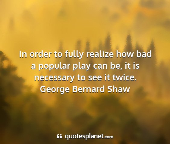 In order to fully realize how bad a popular play can be, it is necessary to see it twice.George Bernard Shaw