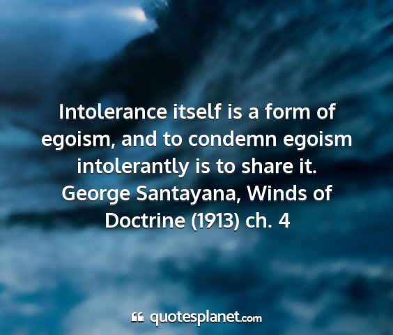 Intolerance itself is a form of egoism, and to condemn egoism intolerantly is to share it.George Santayana, Winds of Doctrine (1913) ch. 4