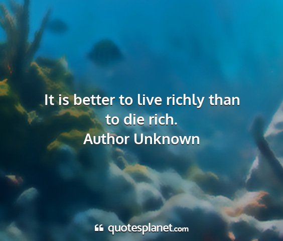 It is better to live richly than to die rich.