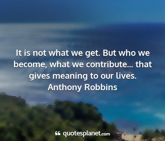 It is not what we get. But who we become, what we contribute... that gives meaning to our lives.Anthony Robbins