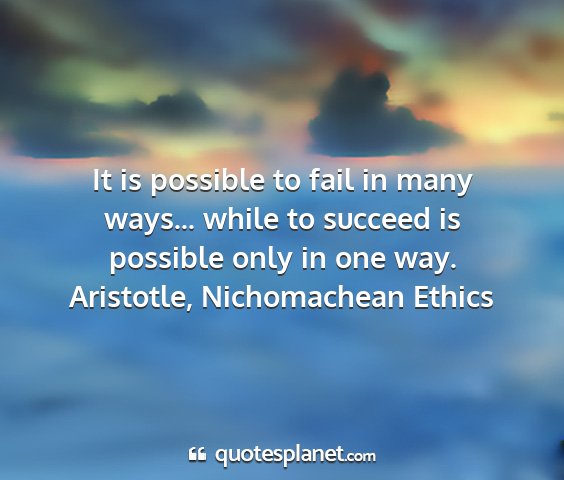 It is possible to fail in many ways... while to succeed is possible only in one way.Aristotle, Nichomachean Ethics