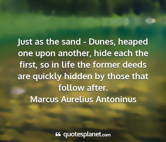 Just as the sand - Dunes, heaped one upon another, hide each the first, so in life the former deeds are quickly hidden by those that follow after.Marcus Aurelius Antoninus