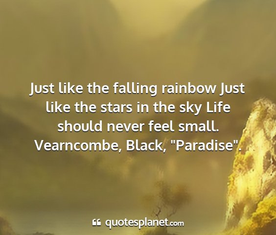 Just like the falling rainbow Just like the stars in the sky Life should never feel small.Vearncombe, Black, "Paradise".