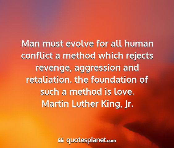 Man must evolve for all human conflict a method which rejects revenge, aggression and retaliation. the foundation of such a method is love.Martin Luther King, Jr.