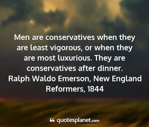 Men are conservatives when they are least vigorous, or when they are most luxurious. They are conservatives after dinner.Ralph Waldo Emerson, New England Reformers, 1844