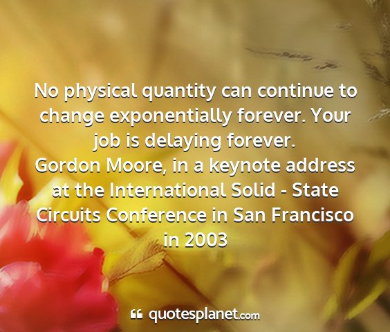 Gordon moore, in a keynote address at the international solid - state circuits conference in san francisco in 2003 - no physical quantity can continue to change...