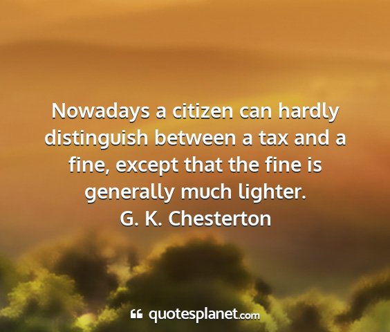 Nowadays a citizen can hardly distinguish between a tax and a fine, except that the fine is generally much lighter.G. K. Chesterton