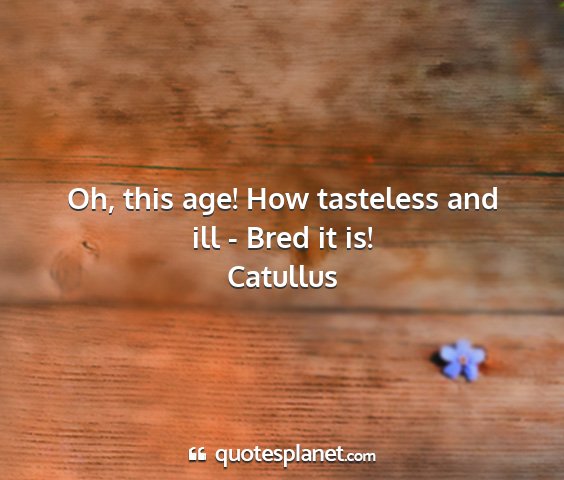 Oh, this age! How tasteless and ill - Bred it is!