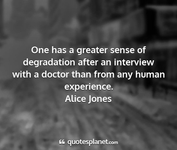 One has a greater sense of degradation after an interview with a doctor than from any human experience.Alice Jones
