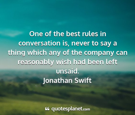 One of the best rules in conversation is, never to say a thing which any of the company can reasonably wish had been left unsaid.Jonathan Swift