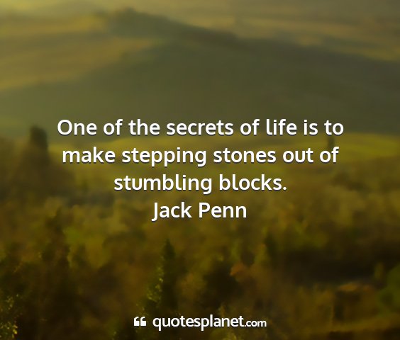 One of the secrets of life is to make stepping stones out of stumbling blocks.