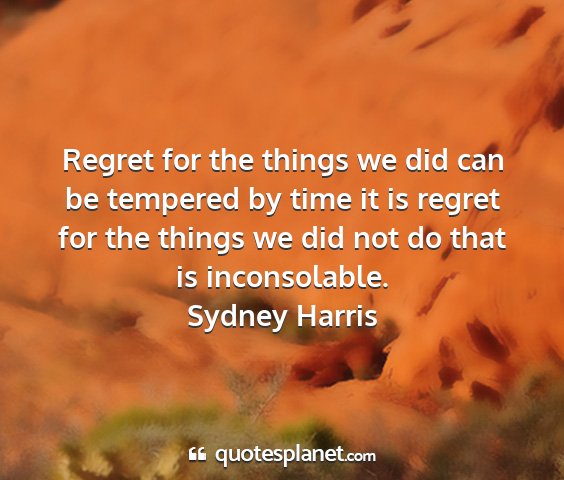 Regret for the things we did can be tempered by time it is regret for the things we did not do that is inconsolable.Sydney Harris