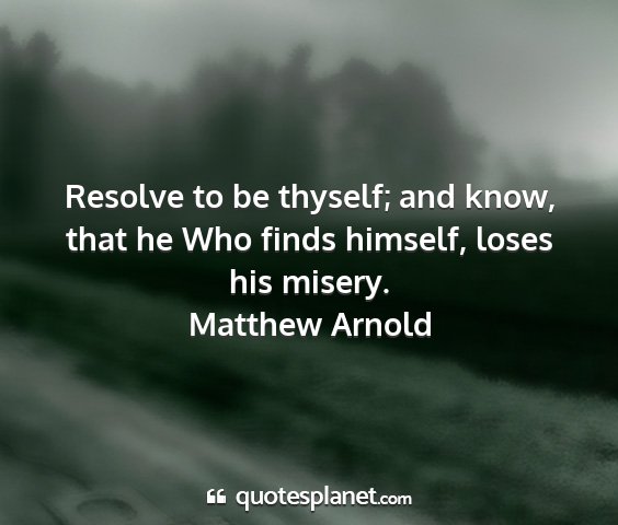Resolve to be thyself; and know, that he Who finds himself, loses his misery.