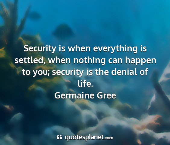 Security is when everything is settled, when nothing can happen to you; security is the denial of life.Germaine Gree