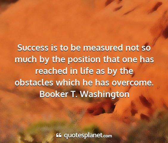 Success is to be measured not so much by the position that one has reached in life as by the obstacles which he has overcome.Booker T. Washington