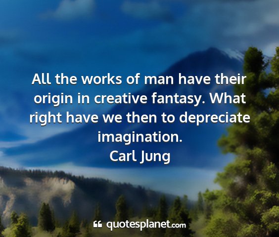 All the works of man have their origin in creative fantasy. What right have we then to depreciate imagination.Carl Jung