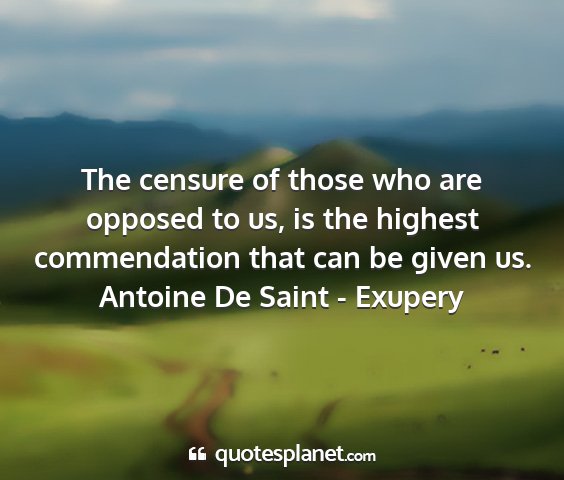 The censure of those who are opposed to us, is the highest commendation that can be given us.Antoine De Saint - Exupery