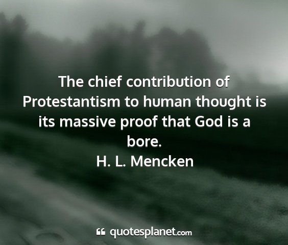The chief contribution of Protestantism to human thought is its massive proof that God is a bore.H. L. Mencken