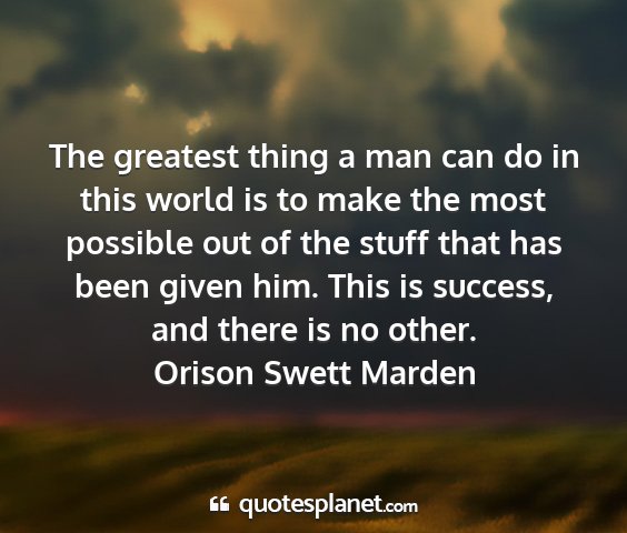 The greatest thing a man can do in this world is to make the most possible out of the stuff that has been given him. This is success, and there is no other.Orison Swett Marden