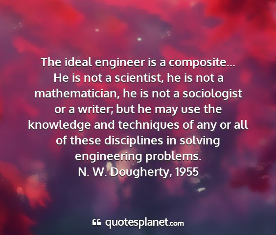The ideal engineer is a composite... He is not a scientist, he is not a mathematician, he is not a sociologist or a writer; but he may use the knowledge and techniques of any or all of these disciplines in solving engineering problems.N. W. Dougherty, 1955