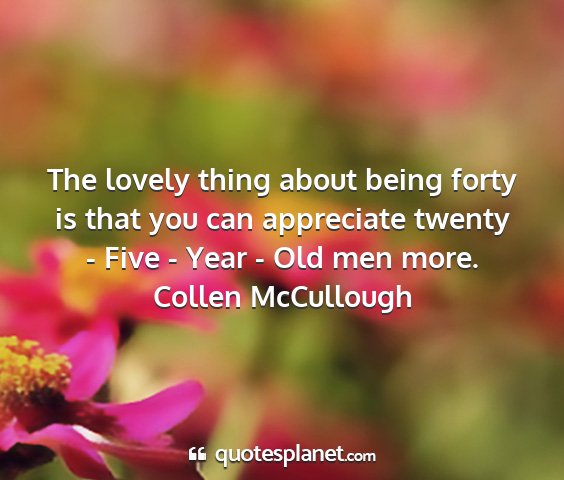 The lovely thing about being forty is that you can appreciate twenty - Five - Year - Old men more.Collen McCullough