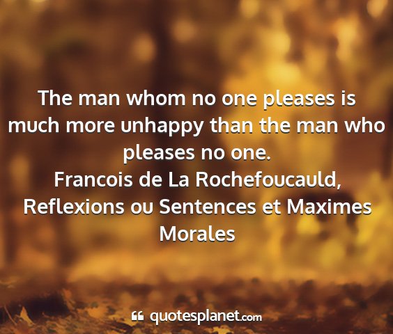 The man whom no one pleases is much more unhappy than the man who pleases no one.Francois de La Rochefoucauld, Reflexions ou Sentences et Maximes Morales
