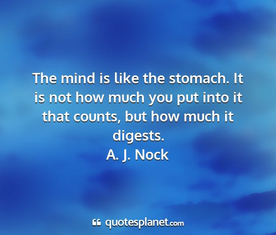 The mind is like the stomach. It is not how much you put into it that counts, but how much it digests.A. J. Nock