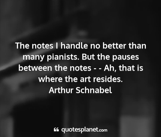 The notes I handle no better than many pianists. But the pauses between the notes - - Ah, that is where the art resides.Arthur Schnabel