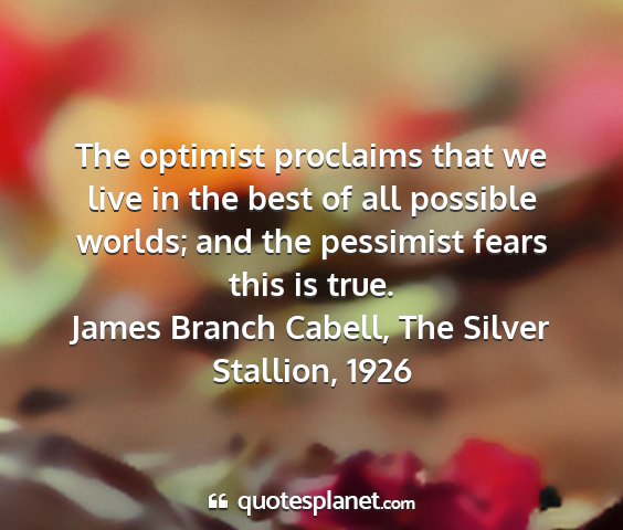 The optimist proclaims that we live in the best of all possible worlds; and the pessimist fears this is true.James Branch Cabell, The Silver Stallion, 1926