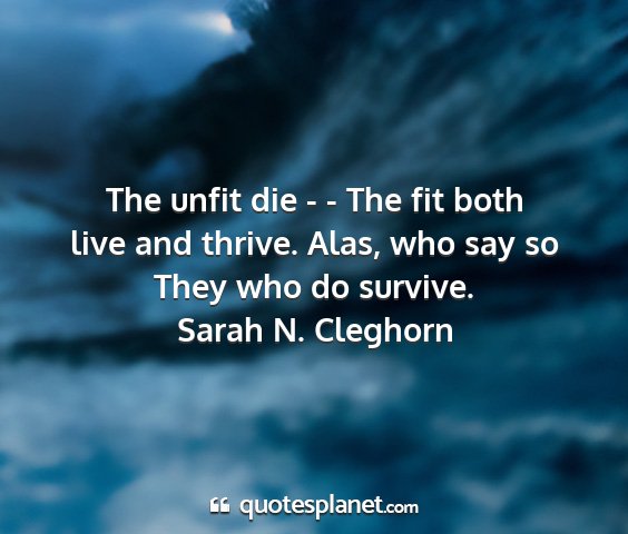 The unfit die - - The fit both live and thrive. Alas, who say so They who do survive.Sarah N. Cleghorn