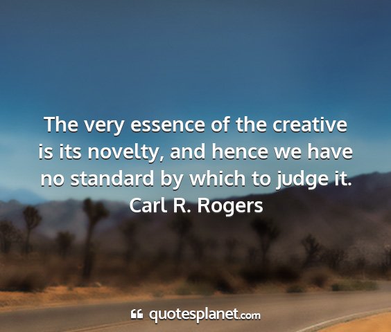 The very essence of the creative is its novelty, and hence we have no standard by which to judge it.Carl R. Rogers
