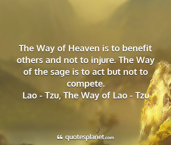The Way of Heaven is to benefit others and not to injure. The Way of the sage is to act but not to compete.Lao - Tzu, The Way of Lao - Tzu
