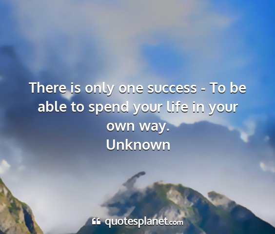 There is only one success - To be able to spend your life in your own way.