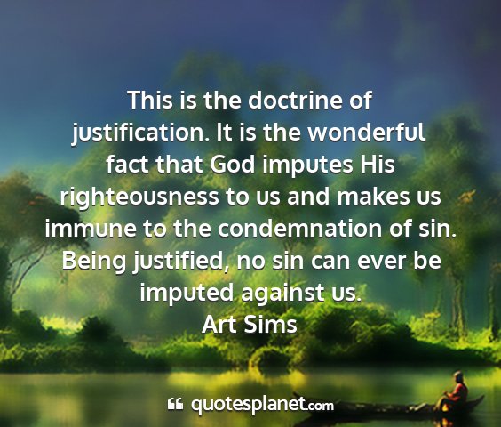 This is the doctrine of justification. It is the wonderful fact that God imputes His righteousness to us and makes us immune to the condemnation of sin. Being justified, no sin can ever be imputed against us.Art Sims