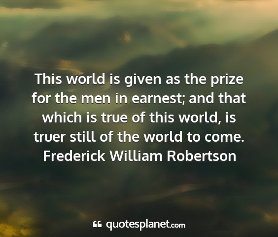 This world is given as the prize for the men in earnest; and that which is true of this world, is truer still of the world to come.Frederick William Robertson