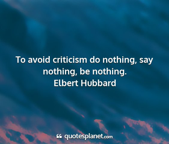 To avoid criticism do nothing, say nothing, be nothing.