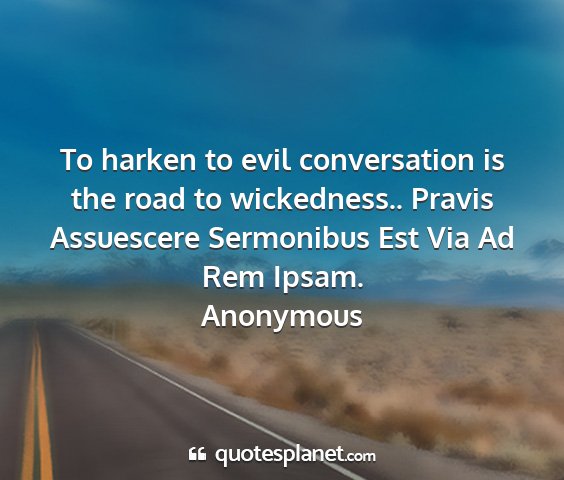 To harken to evil conversation is the road to wickedness.. Pravis Assuescere Sermonibus Est Via Ad Rem Ipsam.Anonymous