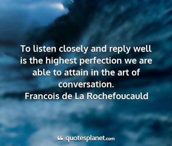 To listen closely and reply well is the highest perfection we are able to attain in the art of conversation.Francois de La Rochefoucauld
