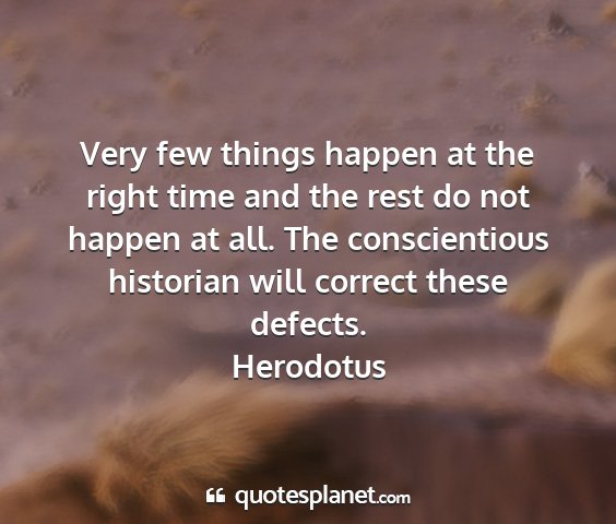 Very few things happen at the right time and the rest do not happen at all. The conscientious historian will correct these defects.Herodotus