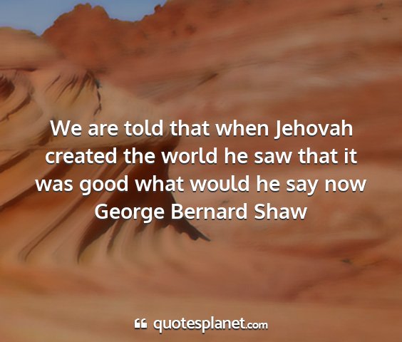We are told that when Jehovah created the world he saw that it was good what would he say nowGeorge Bernard Shaw