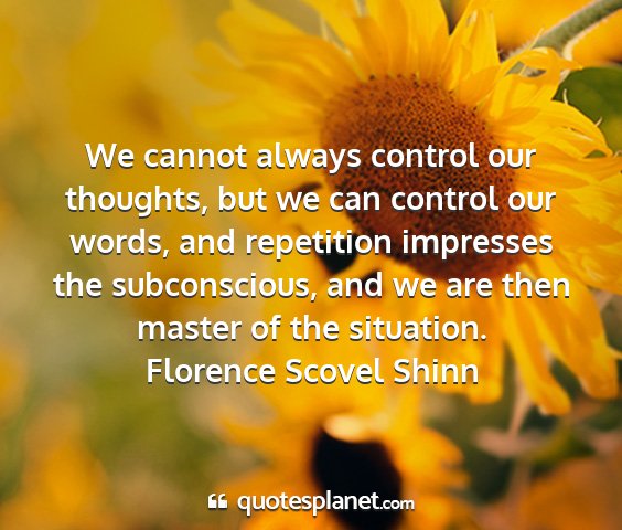 We cannot always control our thoughts, but we can control our words, and repetition impresses the subconscious, and we are then master of the situation.Florence Scovel Shinn
