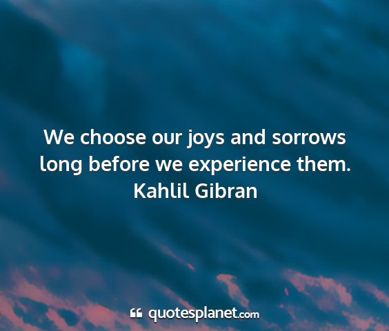 We choose our joys and sorrows long before we experience them.