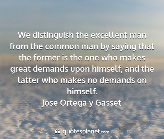 We distinguish the excellent man from the common man by saying that the former is the one who makes great demands upon himself, and the latter who makes no demands on himself.Jose Ortega y Gasset
