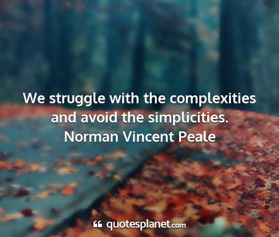 We struggle with the complexities and avoid the simplicities.