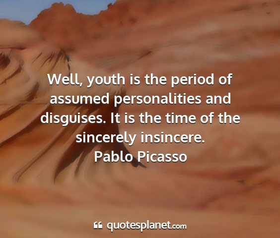 Well, youth is the period of assumed personalities and disguises. It is the time of the sincerely insincere.Pablo Picasso