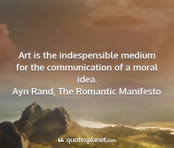 Art is the indespensible medium for the communication of a moral idea.Ayn Rand, The Romantic Manifesto