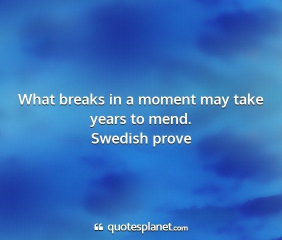 What breaks in a moment may take years to mend.