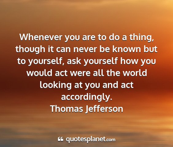 Whenever you are to do a thing, though it can never be known but to yourself, ask yourself how you would act were all the world looking at you and act accordingly.Thomas Jefferson