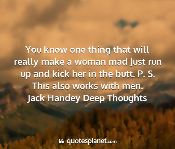 You know one thing that will really make a woman mad Just run up and kick her in the butt. P. S. This also works with men.Jack Handey Deep Thoughts