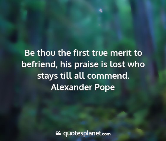 Be thou the first true merit to befriend, his praise is lost who stays till all commend.Alexander Pope